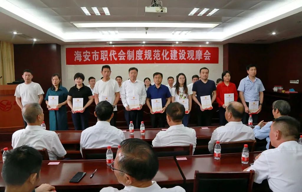 鵬飛集團職代會制度建設規范,以職代會為基本形式的基層民主管理制度體系健全程度名列前茅。借此契機,海安市總工會在鵬飛集團召開海安市職代會制度規范化建設觀摩會,來自全市40余名基層工會干部參加觀摩。